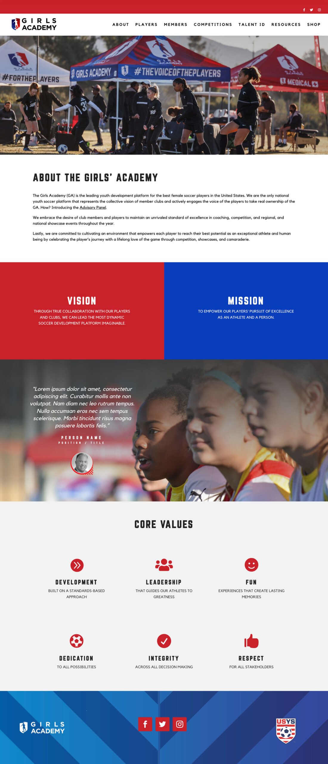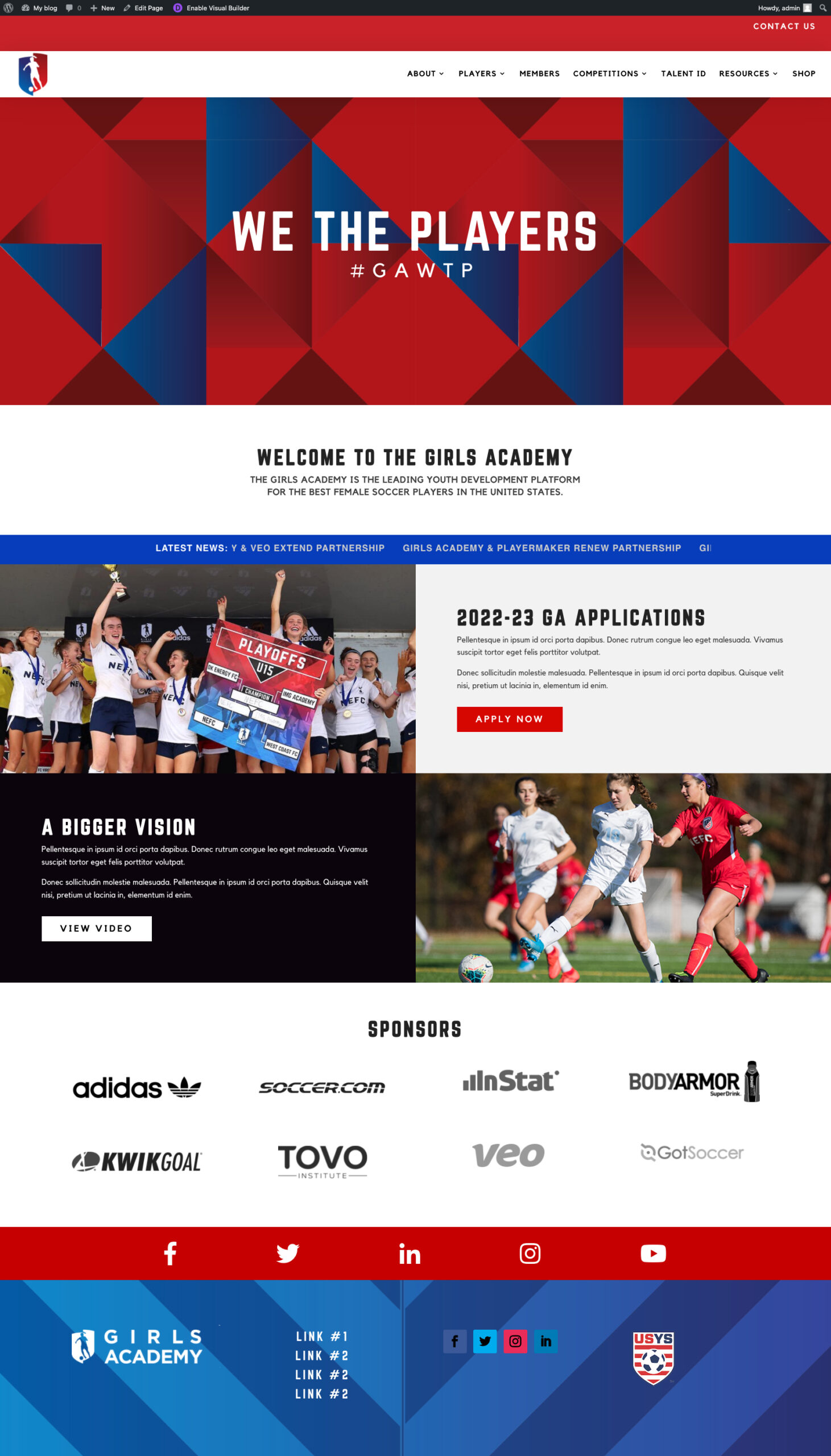 In collaboration with the Girls Academy League, I designed and developed a dynamic digital presence that reflects the organization’s mission to elevate youth women’s soccer. My work included a responsive website overhaul, intuitive user-experience enhancements, and a cohesive brand aesthetic geared toward stakeholders, athletes, and fans. The resulting platform is sleek, mobile-optimized, and built to support growth, engagement, and long-term community impact.