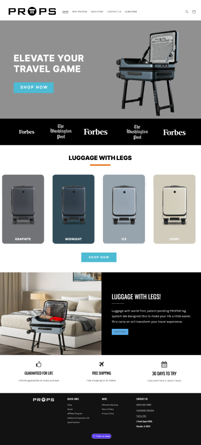 Collaborated with PROPS Luggage to build a unified creative suite encompassing digital marketing assets, print collateral, and branded social media content. I led the design and execution of web-graphics, email templates, print graphics and social campaigns — ensuring visual consistency across touchpoints and reinforcing the brand’s innovation-driven positioning.
